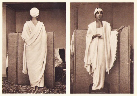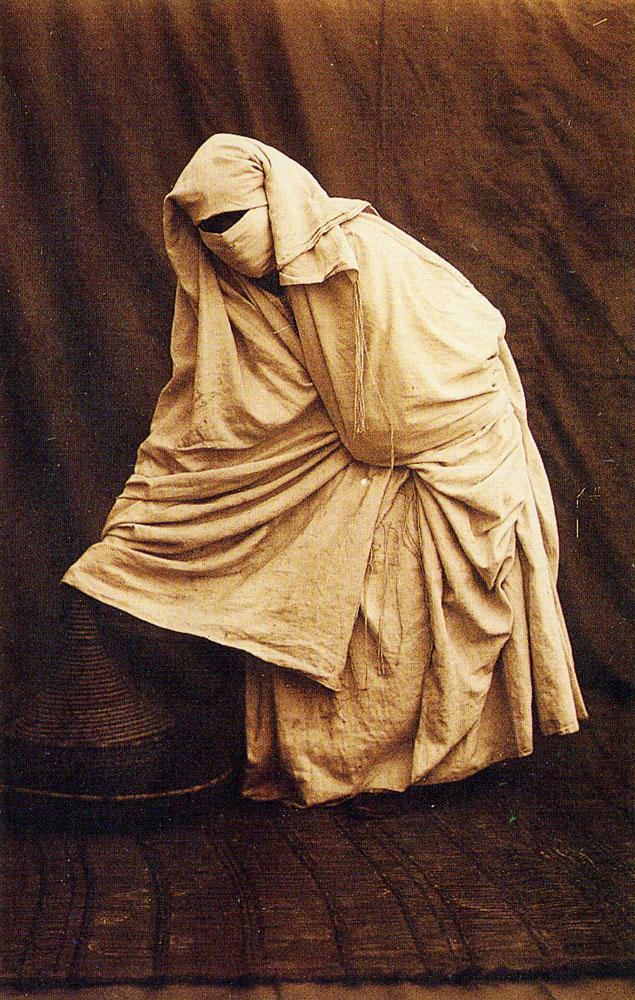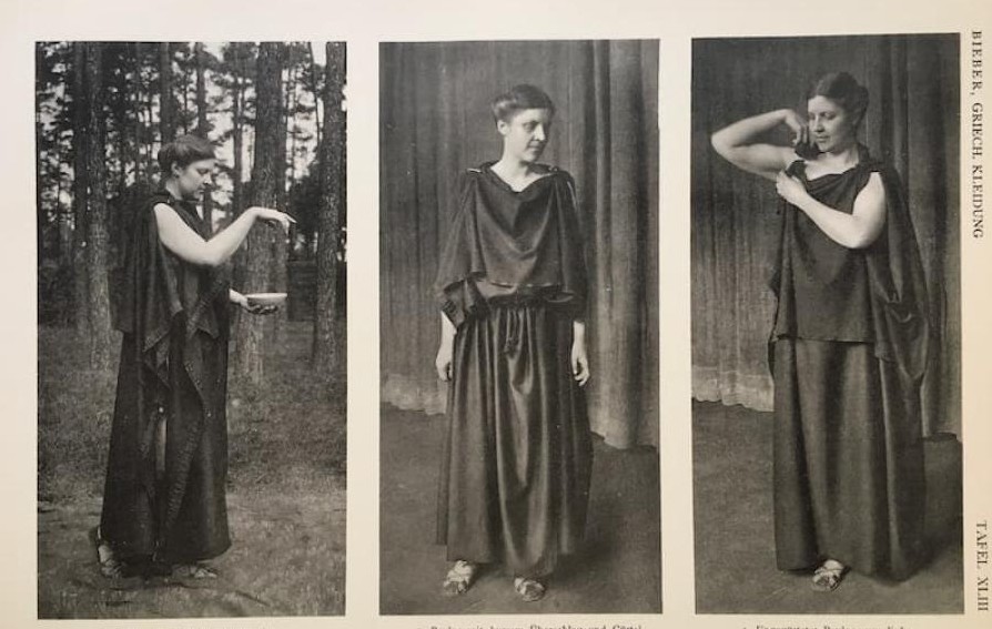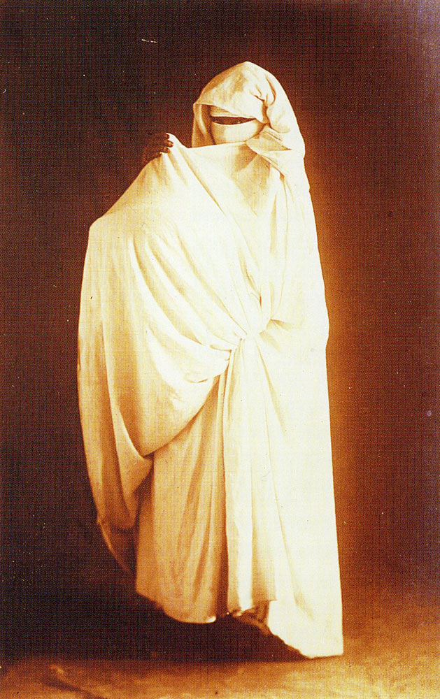 Die beiden Texte zeigt nicht nur Gewänder und ihre Körper, sie bedecken sie auch (aus mindestens ökonomischem Kalkül). Im Text von Phryne und Blanche stecken also eine Reihen von anderen Bildern, die Vismann aufruft und denen sie damit Text und Schrift überwirft. Das sind die untem folgenden Bilder, die Schleierfotographien und Drapierstudien von Gaetan Clerambault (einem der Lehrer Lacans). Schon die Passagen über Phyrne und Blanche muss als als Forsetzung der Modelle aus dem Aktenbuch lesen: Das sind Passagen über den Akt, den Vismann Aktenakt, aber auch Schreibakt nennt – und denn man auch als Bild- und Tafelakt entziffern kann. Die Fortführung einer Geschichte und Theorie des Akt und der Akte durch die Figur der Phyrne ist schon häufig kommentiert worden; die Passagen zu Clerambault führen weiter, was Vismann im Aktenbuch an Kafkas Saum und am scrinium (Schrein/ Schirm/ Schrank(e) entwickelt hat, nämlich eine kleine Geschichte und Theorie des Saums und des Säumens, die sie hier an Knoten/ Schlingen weiterführt, nämlich an der Praxis ‚leicht lösbarer Ligaturen‘. Hegel, Burkhardt und Clerambault sind von einem Merkmal antiker Gewänder besonders fanziniert, daran erinnert sie, nämlich am Ungenähnten oder Gesäumten (einer Operation, die Assoziation, Trennung und Austauschmanöver in sich erhält und darin Ligatur und Lösung ist; das ist ein Modell loser Kopplung, das Vismann vom Dispositiv des antiken Bundes macht, einer freien Assoziation, die so leicht eingegangen werden kann, wie sie gelöst werden kann). Wer hat Angst vom Schleier? Die Vismann nicht, haben die Albertianer ja auch nicht, Dürer auch nicht, warum also sollte sie mit den phobischen Reflexen reagieren, die man im Ladeurkindergarten wahrnimmt, wenn es dort um Schleier und jene Zonen geht, die nicht zum Westen fähig sein sollen? Hoffentlich witzig, wie dieser Garten heute Vismann liest und Passagen ihres Werkes kommentiert, als ginge es darum, sich Strohhalme zu schnappen. Ich generalisiere mal wieder, dem römischen Kalender folgend, im wütenden Zug, in Wirklichkeit gilt Mangold: Kennst Du einen, kennst Du einen.