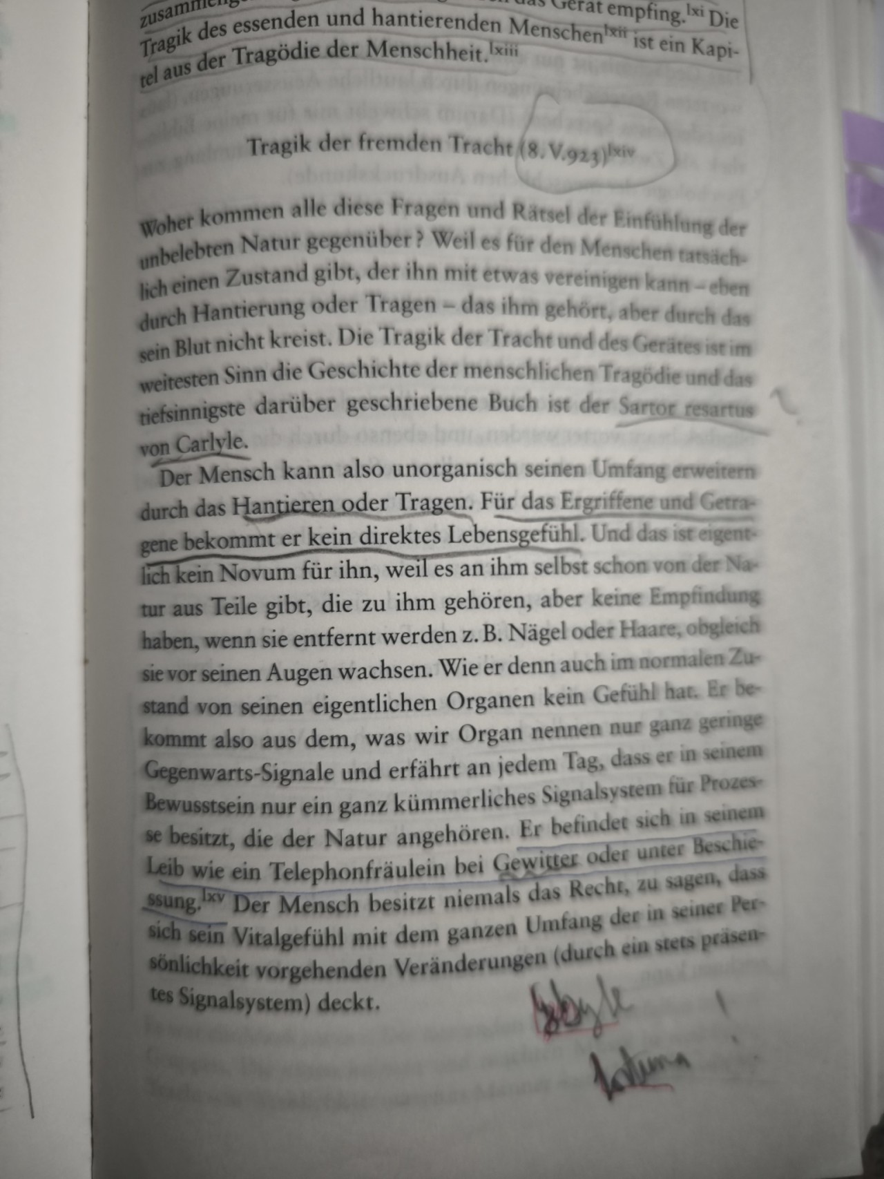 Der Mensch, so notiert Warburg im Mai 1923, besitzt niemals ein bestimmtes Recht, nämlich das Recht zu sagen, dass sich sein Vitalgefühl mit dem ganzen Umfang der in seiner Persönlichkeit vorgehenden Veränderung decke. Als Aby Warburg dieses kleine Rechtspassage während seiner Zeit in Kreuzlingen notiert, da hat er schon eine Geschichte und Theorie des Umfangs entwickelt, er spricht von Umfangsbestimmung. Er hat auch schon eine Geschichte und Theorie des Deckens, der Deckung und Decken entwickelt, die schon lange auch Geschichte und Theorie des Trachtens und der Tracht ist. Lange schon meint: seit Abschluss seiner Arbeit an Botticelli. Mehr noch: die Aufmerksamkeit, die er da am bewegten Beiwerk entwickelt, an flatternder Kleidung und flatternden Haaren ist schon Teil dieser Geschichte und diese Theorie. Sie macht sich an der Frage nach der Verleibung und an der Frage nach einer ‚Beschichtung‘ fest. Das, was den Menschen verleibt oder aber was der Mensch , das ist darin dasjenige, was ihn ‚beschichtet‘ und was er ‚beschichtet‘, ihm darin nicht nur Kontur, Unterscheidung nach Äußerem und Innerem, sondern auch bewegt und bewegend verkehrende Kontur/ Umschreibung in Geschichte gibt. Etwas am Menschen deckt sich nicht mit ihm, etwas am Menschen ragt raus.