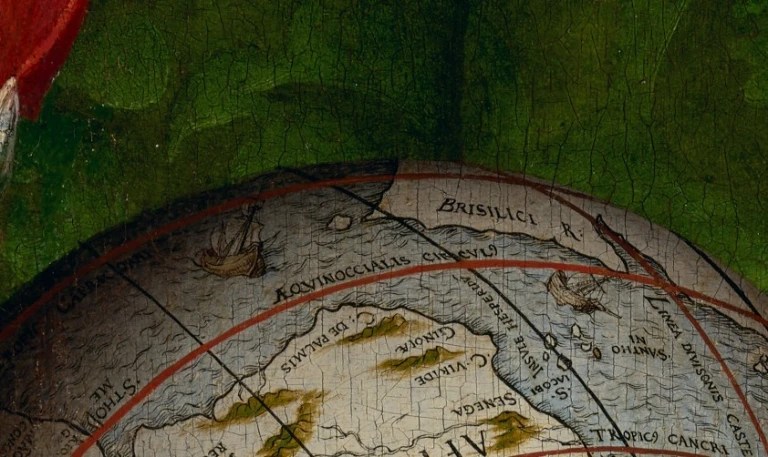 Ich beschäftige mich mit einem ersten europäischen Gemälde zum Land der Tupi mit großem Stil (nicht nur großem Stil, sondern auch kleinem Stil, also mit einem zwischen Sublimem und Subtilem schwingenden, auf und abgehendem Gemälde). Auf diesem Gemälde taucht das Land der Tupi bereits im Kontext anthropovaguer und anthropolarer Wesen, jedoch auch (ich muss das vorsichtig sagen) vor dem Mythos, vor dem Begriff und vor der Reiseliteratur zur brasilianischen Anthropofagie auf. Vor Thevet und vor Staden, die mit ihren Berichten und Bildern die ersten dokumentarischen Vorstellungen brasilianischer Kannibalen liefern, richtet der Maler eine Szene anthropovaguer und anthropolarer Wesen um das Land der Tupinamba herum ein. Es ist das erste Gemälde mit hohem Stil, auf dem dieses Land auftaucht, dessen Küstenlinie freilich von Landvermessern bereits vor 1533 sichtbar gemacht, kartographiert wurde.