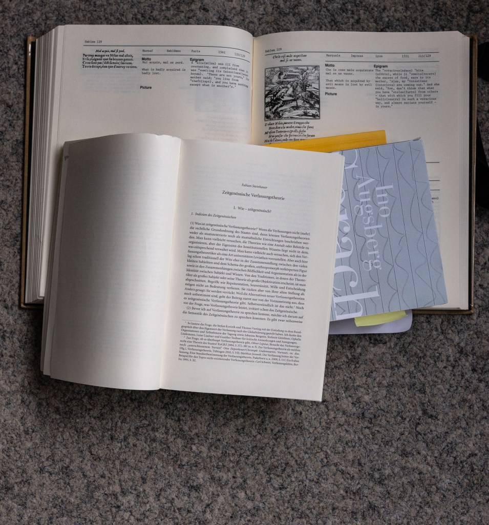 Das ist ein Text zu einem Lehrbuch von Hermann Jahrreiss aus dem Jahr 1930 und zu juridischen Kulturtechniken, in diesem Fall solchen, die etwas verfassen, zum Beispiel Lehrbücher oder Rechtsordnungen. Dieser Text wurde in der ZfM 10 (2014) veröffentlicht und befasst sich mit Tafeln, Diagrammen und Graphien und behandelt Institution aus einer Perspektive der Kulturtechnikforschung, nämlich als lehrendes und schulendes Material.