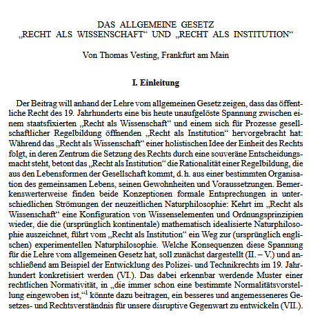 Ernst beiseite. An sich ist es ganz gut, wenn Raster schwächeln. In Vestings Bemühen um eine Geschichte und Theorie permanenter Reformation reibt sich aber etwas zwischen den Stühlen ab, wohl wegen des besten Willens, zwar Staatsrechtslehre wahrzunehmen aber beim besten Willen keine Experimente erkennen zu können, selbst wenn sie vor Augen geladen sind.