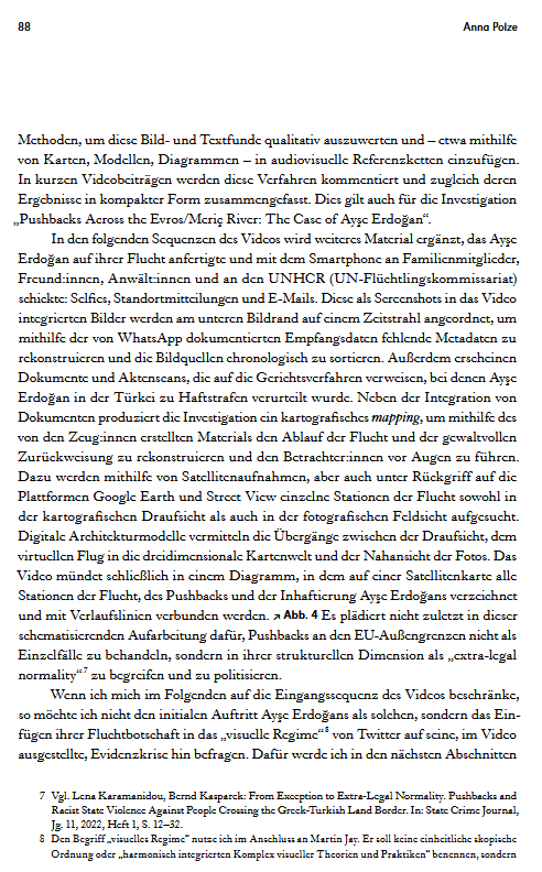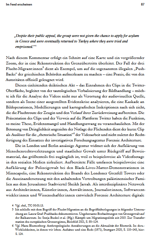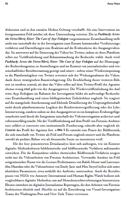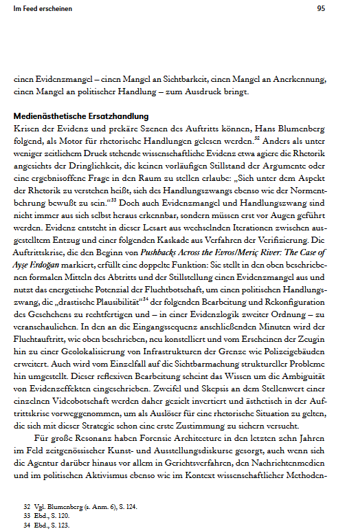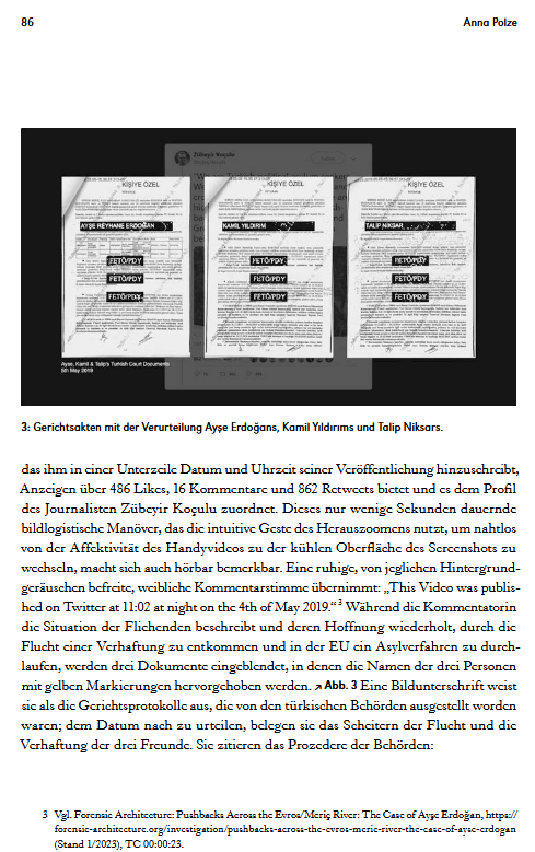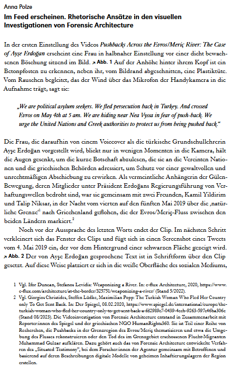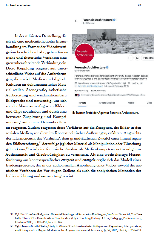 In den Bildwelten des Wissens hat sie 2025 in dem von Roland Meyer herausgebenen Heft zur Bildforensik den Aufsatz ‚Im Feed erscheinen‘ veröffentlicht.
