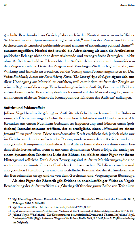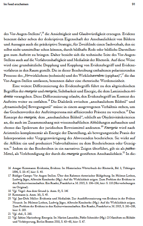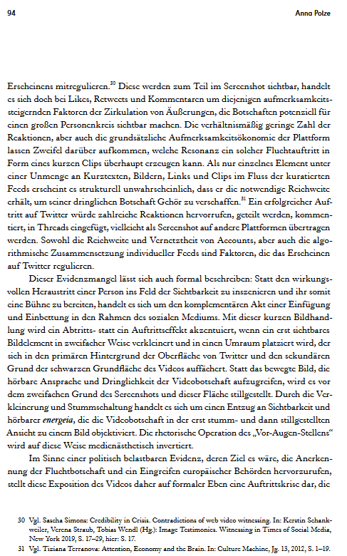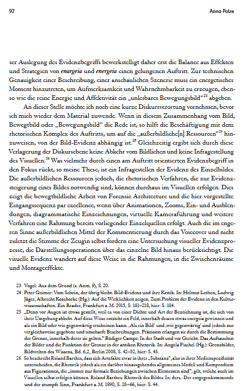 Very vorbildlich! Was genau ist an dem Aufsatz vorbildich? (1.) Polze versteht ein Forschungsfeld nicht als ein durch einschlägige Literatur bestimmtes Feld. Das Forschungsfeld wird nict darüber definiert, dass Autoren erst Bücher schreiben und dann Schüler haben, Das Forschungsfeld setzt sich aus Details zusammen, die Frage stellen. (2.) Die Geschichte und Theorie juridischer Kulturtechniken wird nicht über die Vorstellung der Ausdifferenzierung, der Fragmentierung und des Einbruchs neuer und scheinbar präzendenzloser Techniken verstanden. Sie wird über archäologische Fundgruben wie etwa die Rhetorik verstanden. In Zukunft werden alle Bilder rhetorische Bilder sein, denn das waren sie in der Vergangenheit auch, zumindest in der Perspektive juridischer Kulturtechniken. Bilder sind darin nicht einfach sichtbar. Sie haben Protokolle. Sie sind Bild, weil sie bestritten oder aufgebracht werden. Sie sind Bild durch bildgebende und betrachtende Verfahren. Solche Verfahren sind auch juridisch, wenn sie Differenz operationalisieren, indem sie etwas unterscheiden, skalieren, schichten/ stratifizieren, messen, missen und mustern. Dem geht Polze im Detail nach.