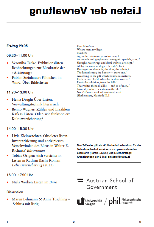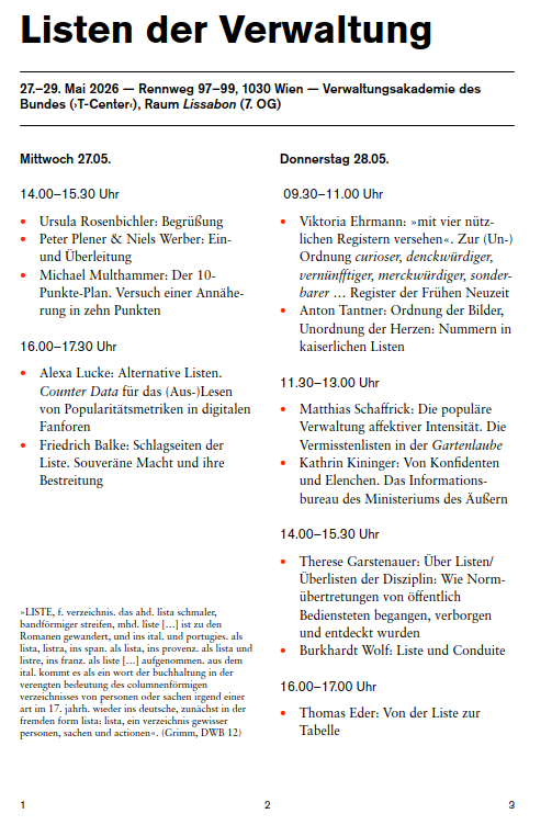 A propos! Ende Mai findet die nächste Jahrestagung der Wiener ENA, also der Austrian School of Government statt. Ich bin im wissenschaftlichen Beirat und werde diesmal mit einem Vortrag über Fähnchen im Wind eine kleine Geschichte und Theorie der Bilderliste aus dem Geist des Wechsels oder vexillatio vorstellen. Wer Lust hat soll dazu kommen, muss sich aber anmelden!